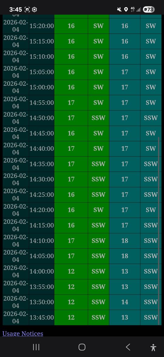 Actual wind around noon